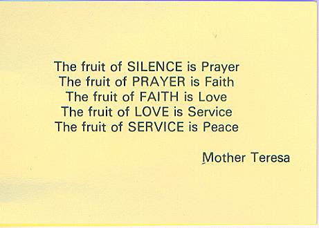 The fruit of silence is prayer. 沈黙の成果は、祈りである。