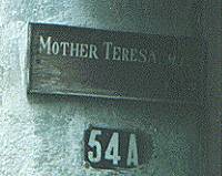 '97年8月1日、泊まっているホテルからは東にまっすぐ1kmほど行ったところに「神の愛の宣教者会」があるらしいので 宿で知り合った者と一緒に歩いて出かけた。探してみるが大きな建物ではないようでなかなか見つからない。 食べ物屋の人に聞いたら、すぐ横の小さな筋を入ったところに入り口があるということで行ってみる。 入り口には Mother Teresaという表札が見えてここであることは間違いない。入り口の門は開いていて 修道女の一人がイスに座っているのが見えるので「マザーテレサに会えますか?」と聞いてみる。すると「今日は 4時から会えます」ということ。